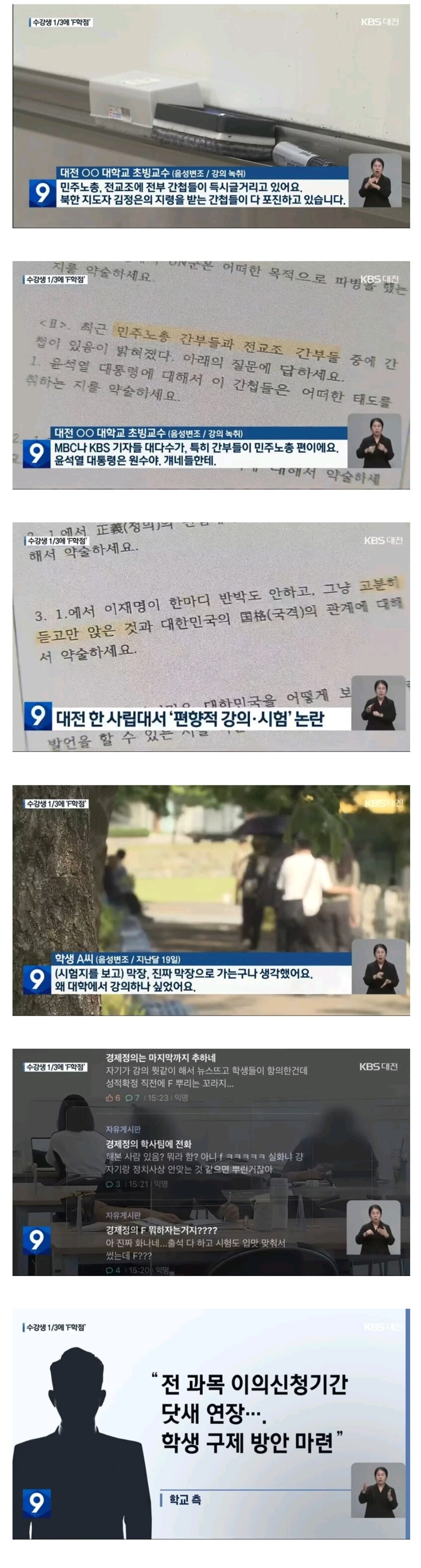 본인과 정치사상이 다르다고 F학점 뿌린 대학 교?수
