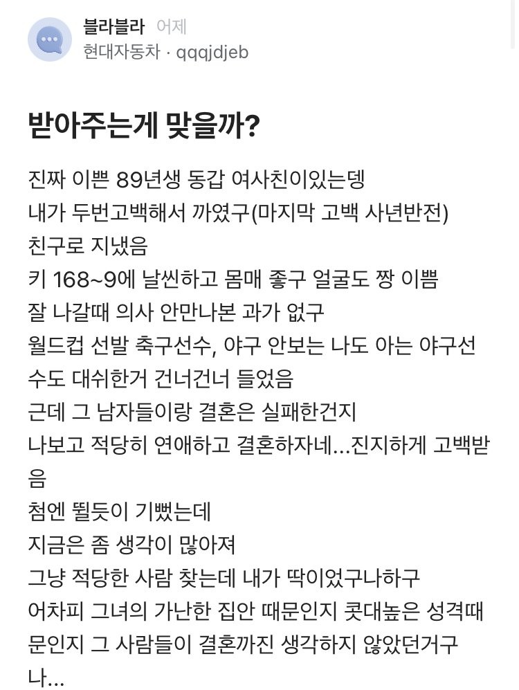 동갑 여사친과 결혼해야할지 고민중인 블라인