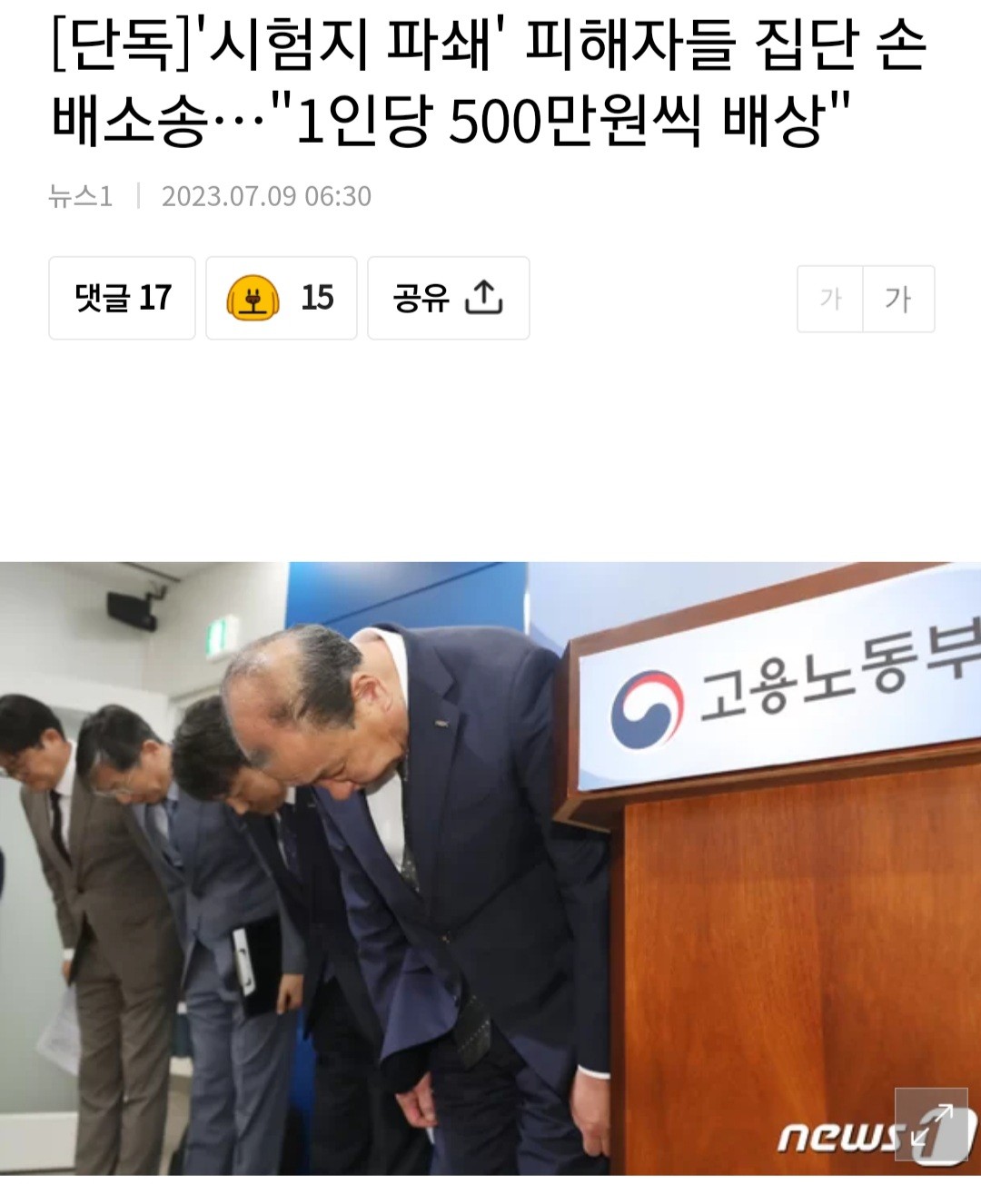 '시험지 파쇄' 피해자들 집단 손배소송…"1인당 500만원씩 배상"