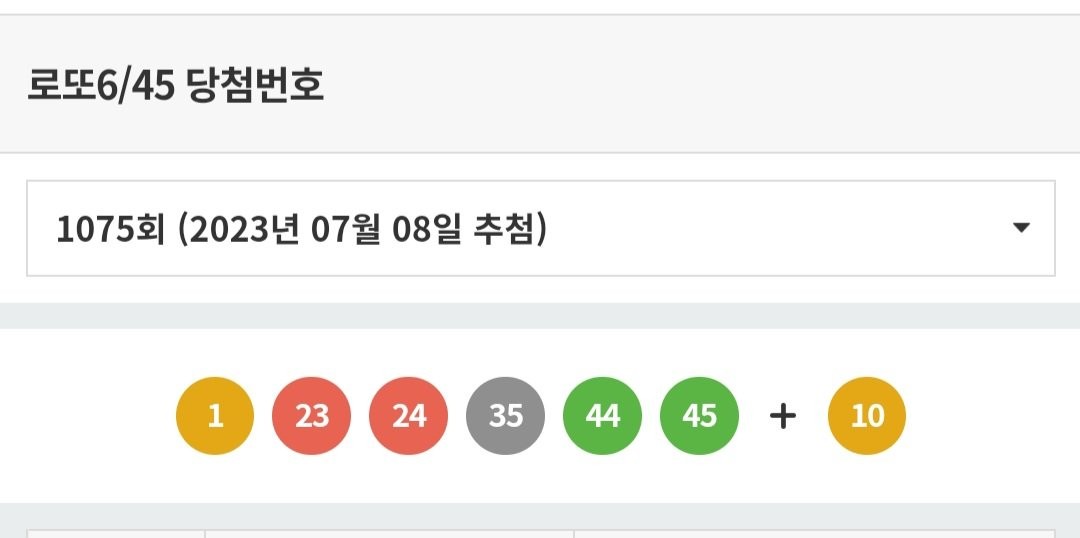 1075회차 로또 1등 당첨번호