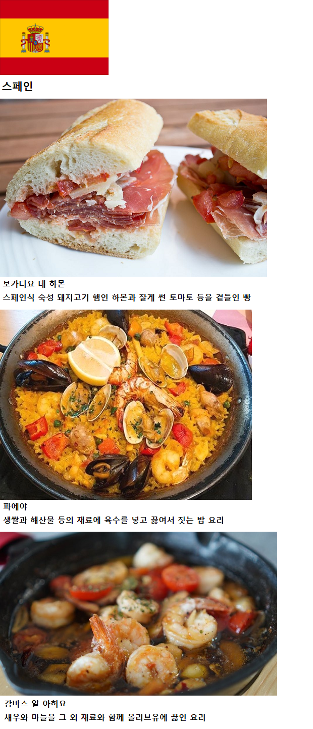 스페인을 대표하는 음식들.