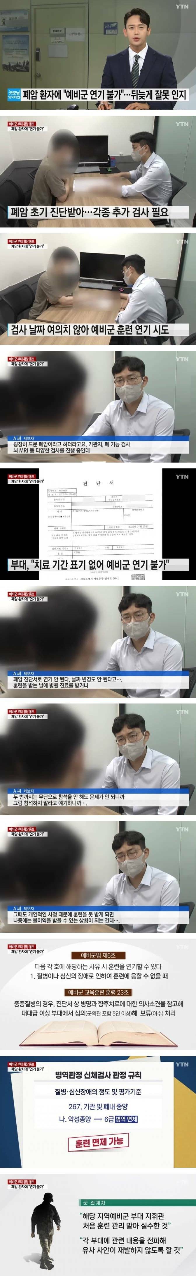 폐암 환자에 예비군 연기 불가 통보