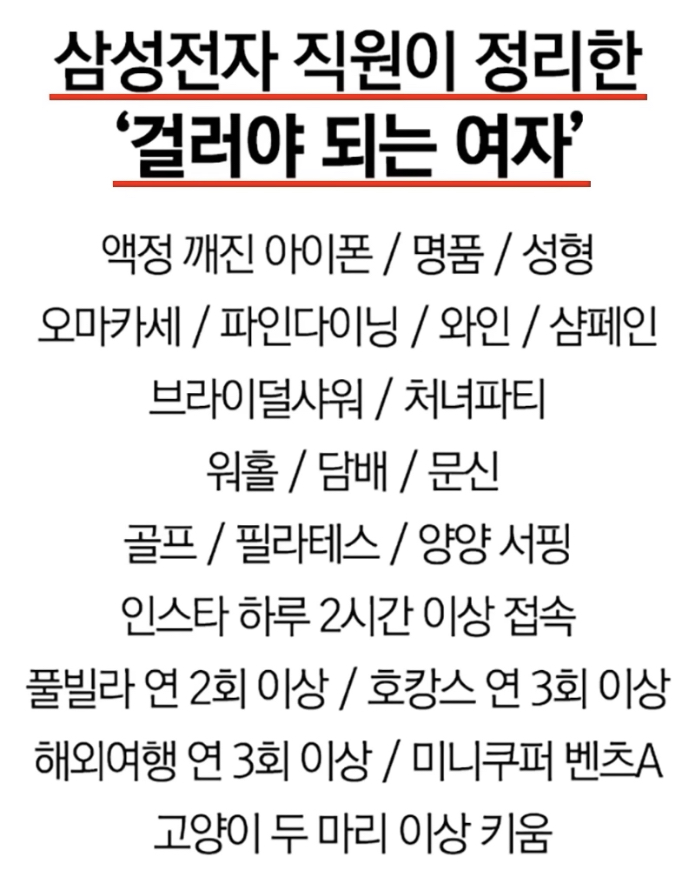 삼성전자 직원이 정리한 ‘걸러야 되는 여자‘