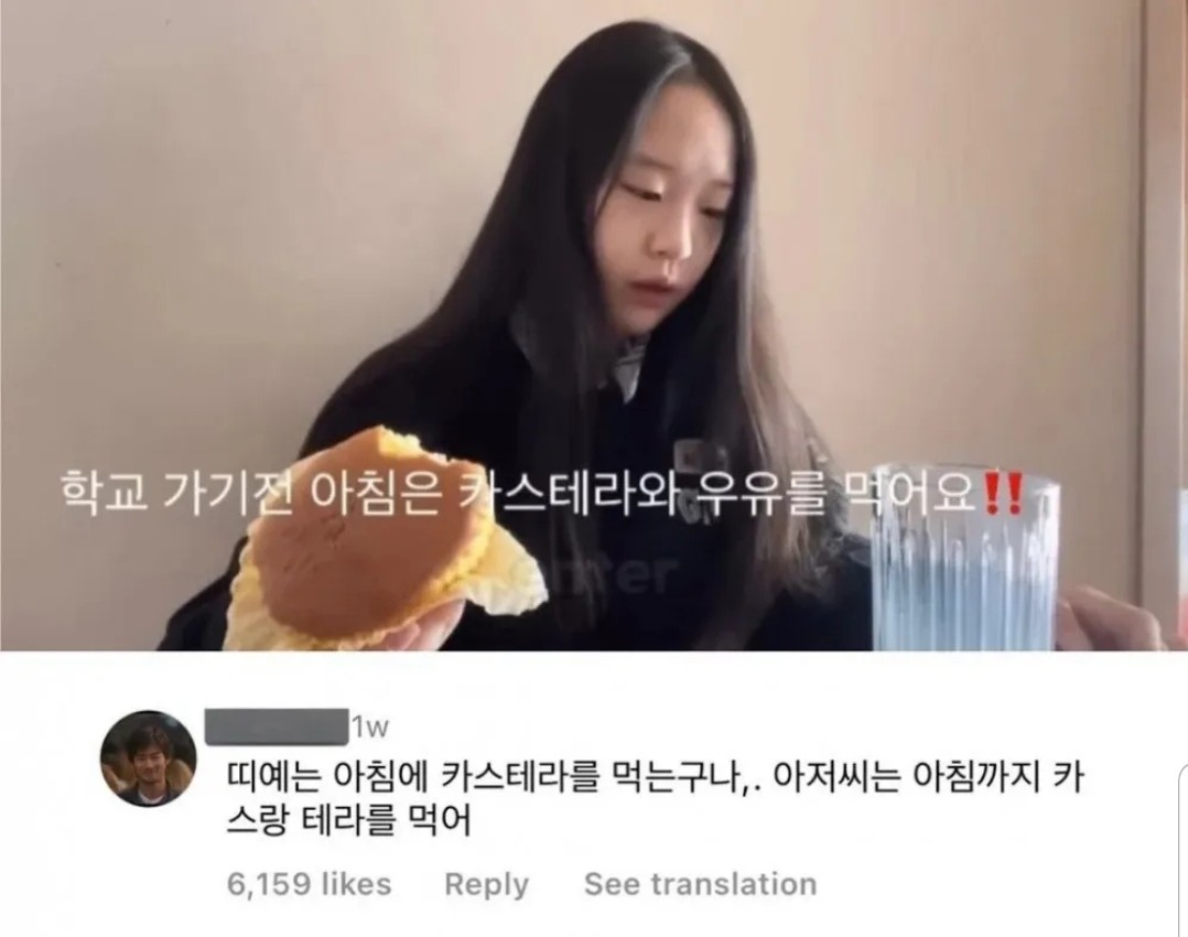 아침에 학교가기전에 카스테라 빵먹는 아이