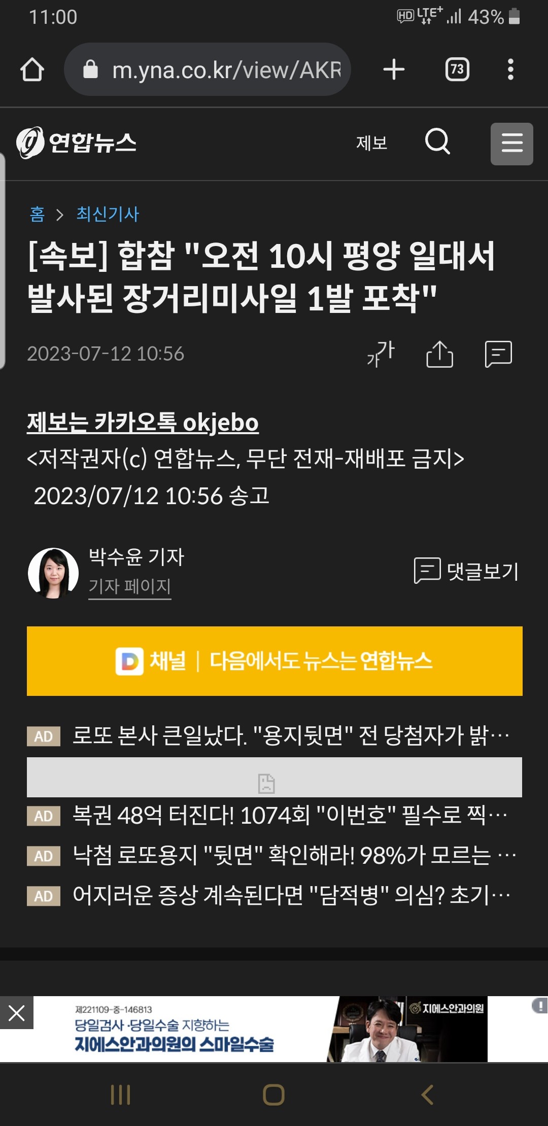 ] 합참 "오전 10시 평양 일대서 발사된 장거리미사일 1발 포착"