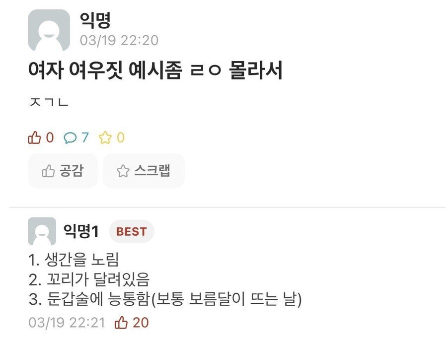 여자들 여우짓 예시