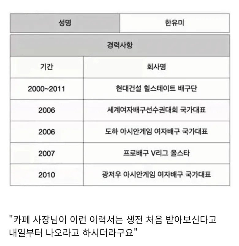 카페 이력서에 쓸 게 없다는 눈나