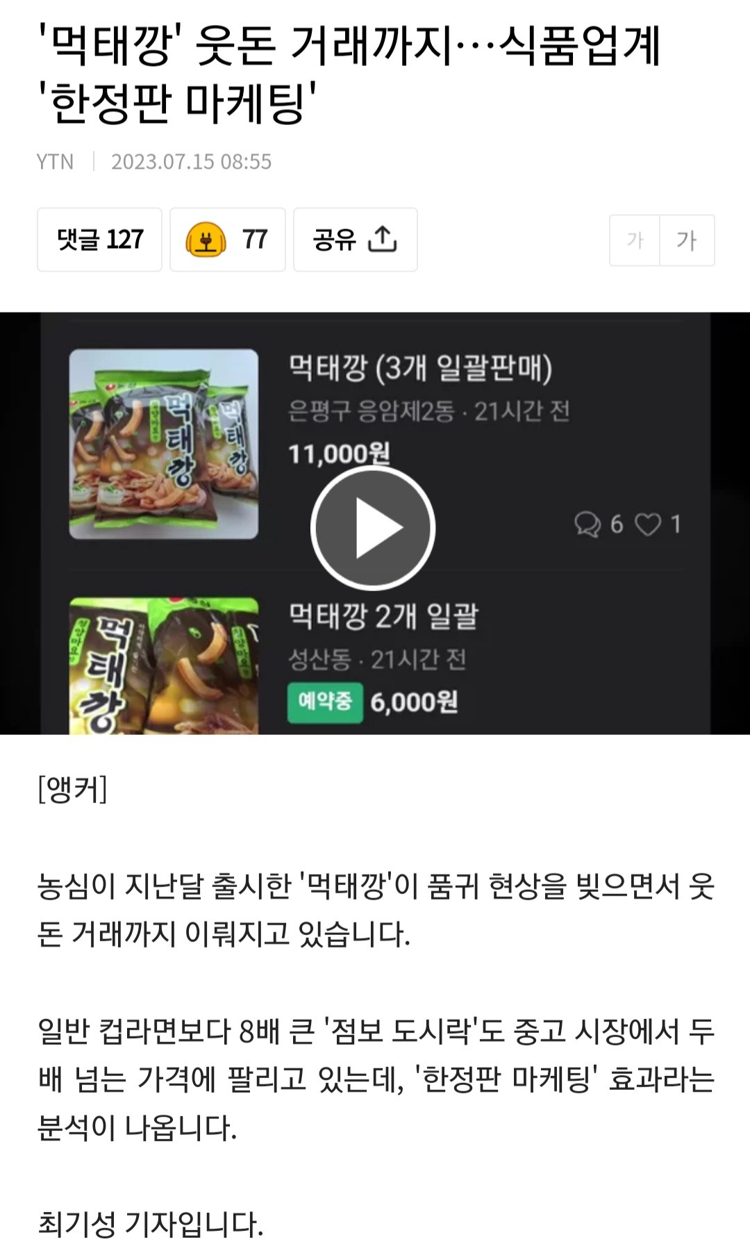 먹태깡 웃돈 거래까지... 한정판 마케팅