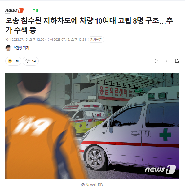[속보] 오송 지하차도 침수로 차량 10여대 고립