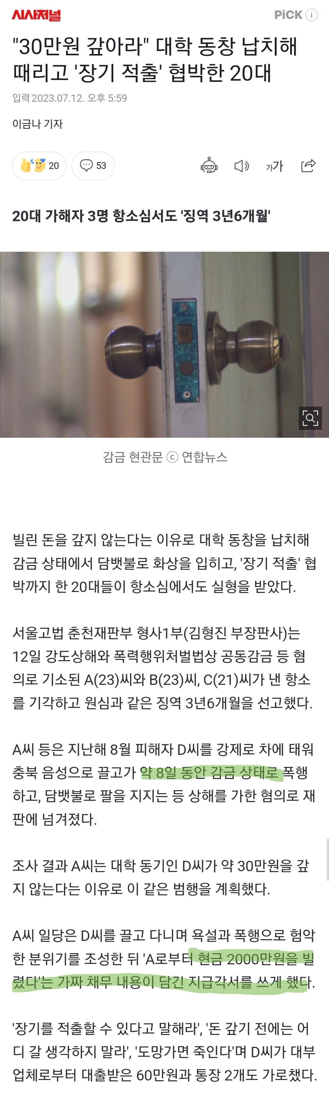 "30만원 갚아라" 대학 동창 납치해 때리고 '장기 적출' 협박한 20대