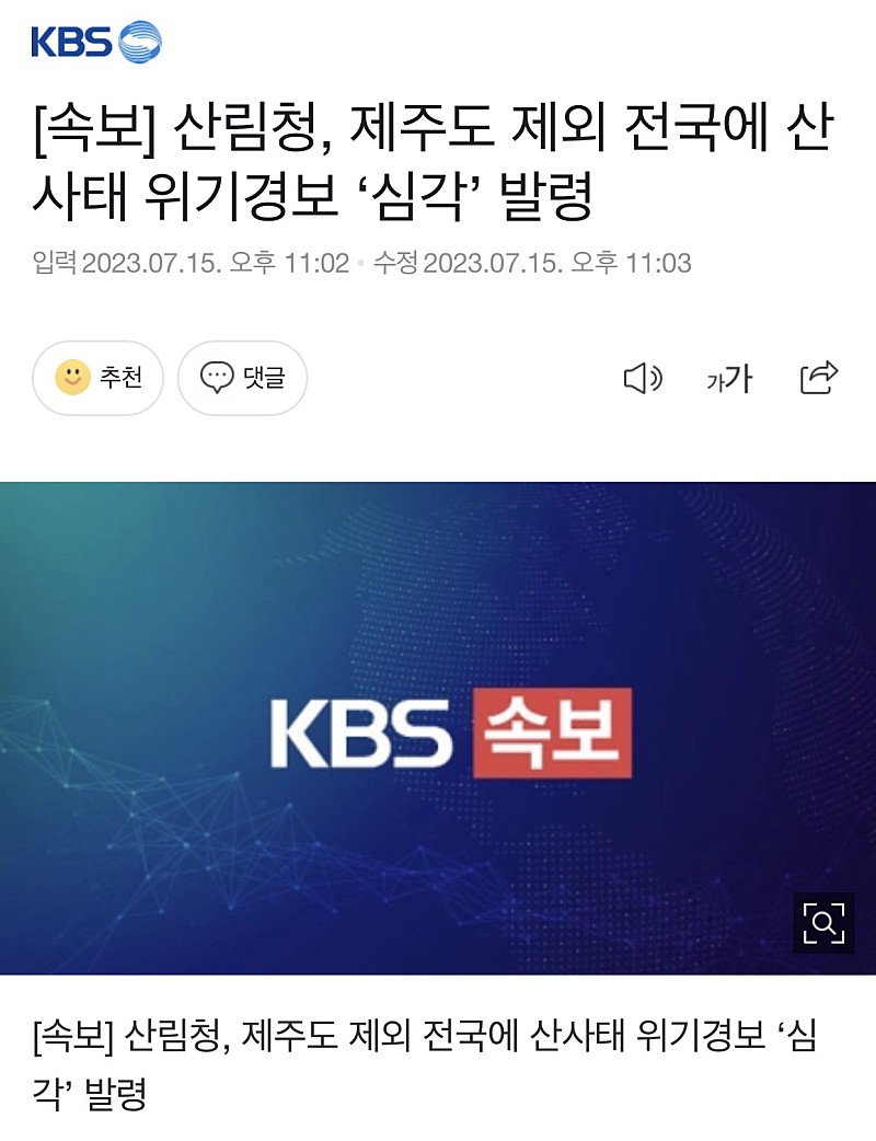 제주도 제외, 전국에 산사태 위기경보 ‘심각’ 발령