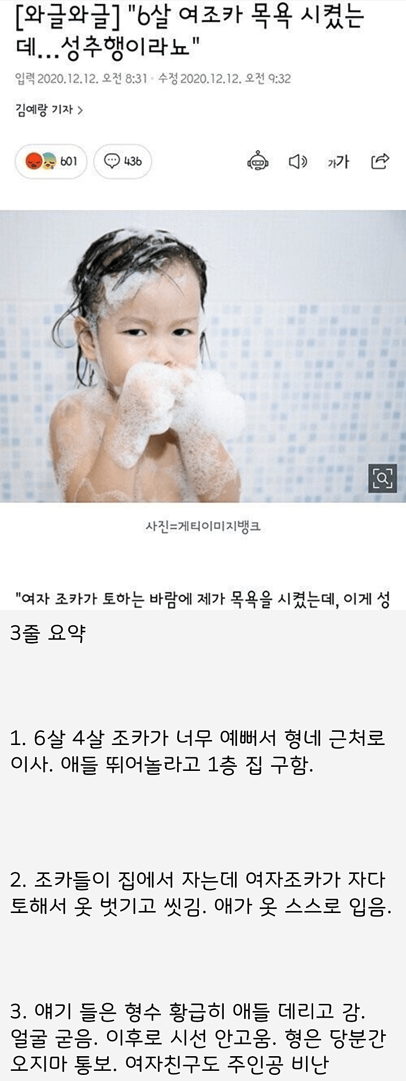 6살 조카 목욕시켰더니 성추행범으로 몰림