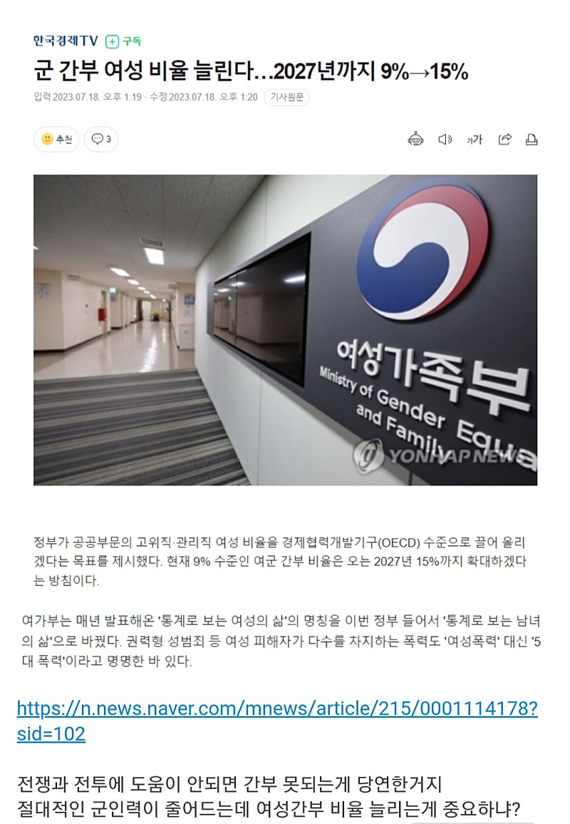 군 간부 여성 비율 늘린다