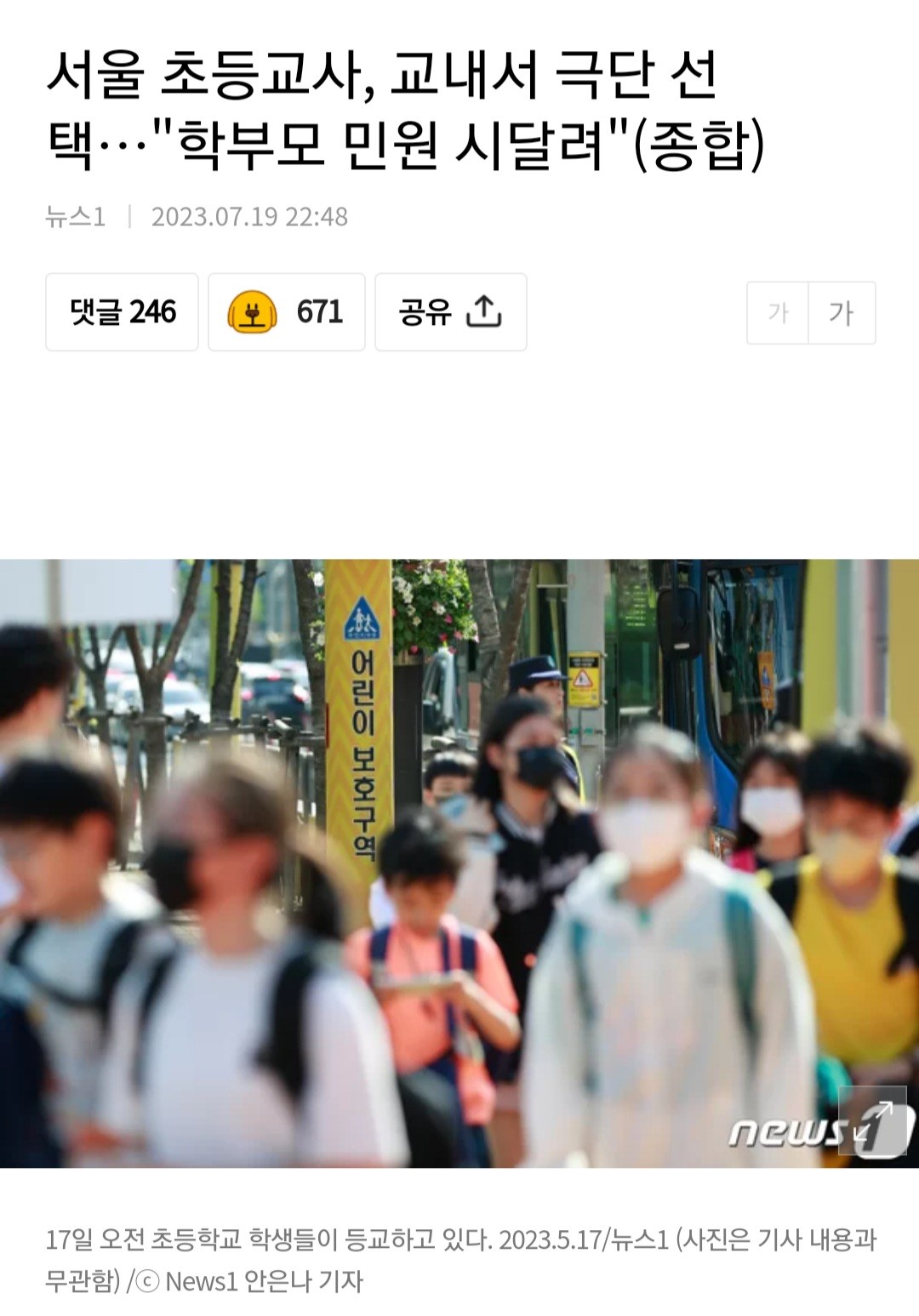 교내서 극단 선택한 서울 초등교사, 이유는 학부모 민원 시달려