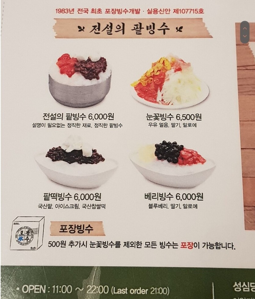 성심당 팥빙수 19년 vs 23년 가격비교