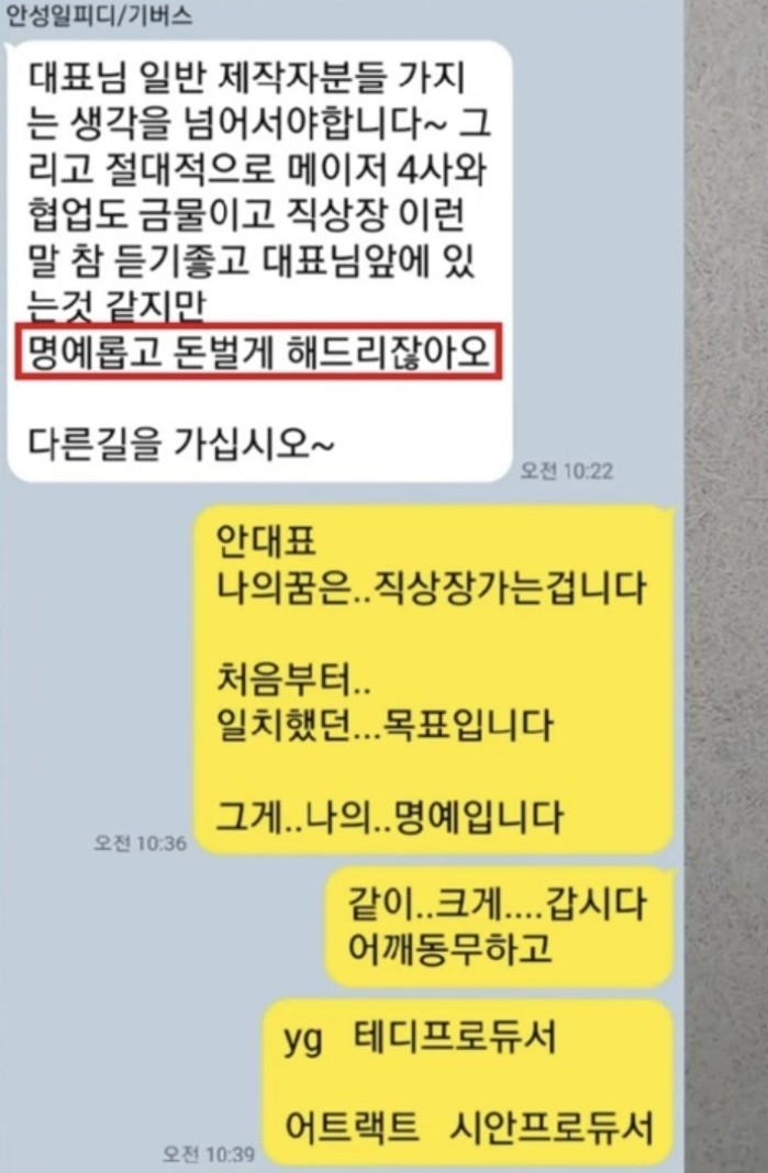 피프티 전홍준 대표와 안성일PD 카톡추가본