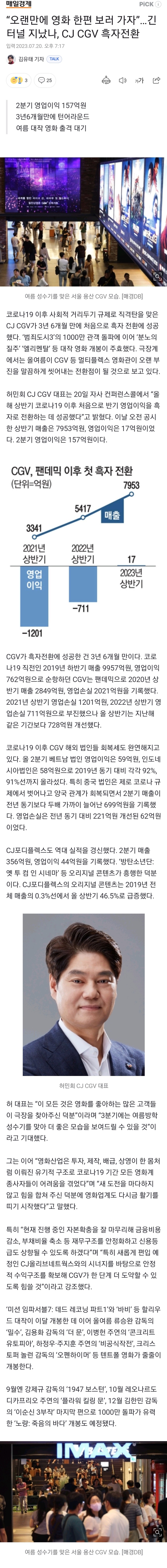 “오랜만에 영화 한편 보러 가자”…긴 터널 지났나, CJ CGV 흑자전환