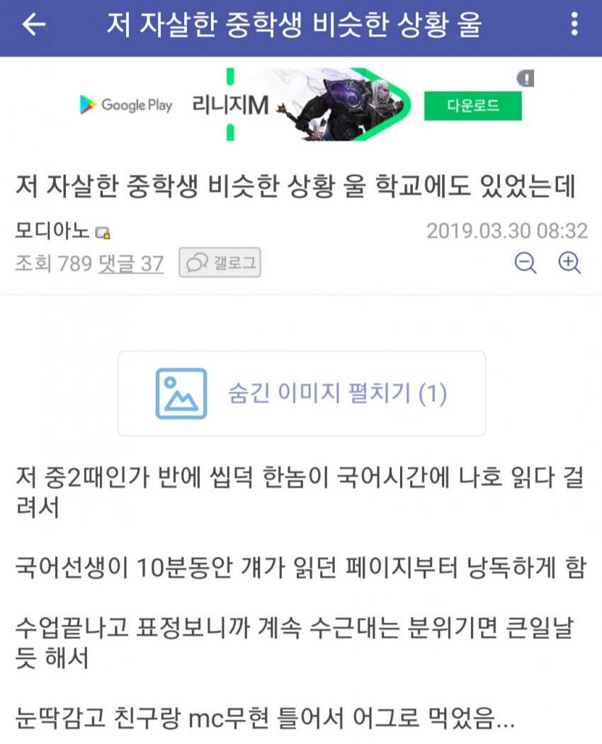 자살할 뻔한 중학생 살린 썰.jpg