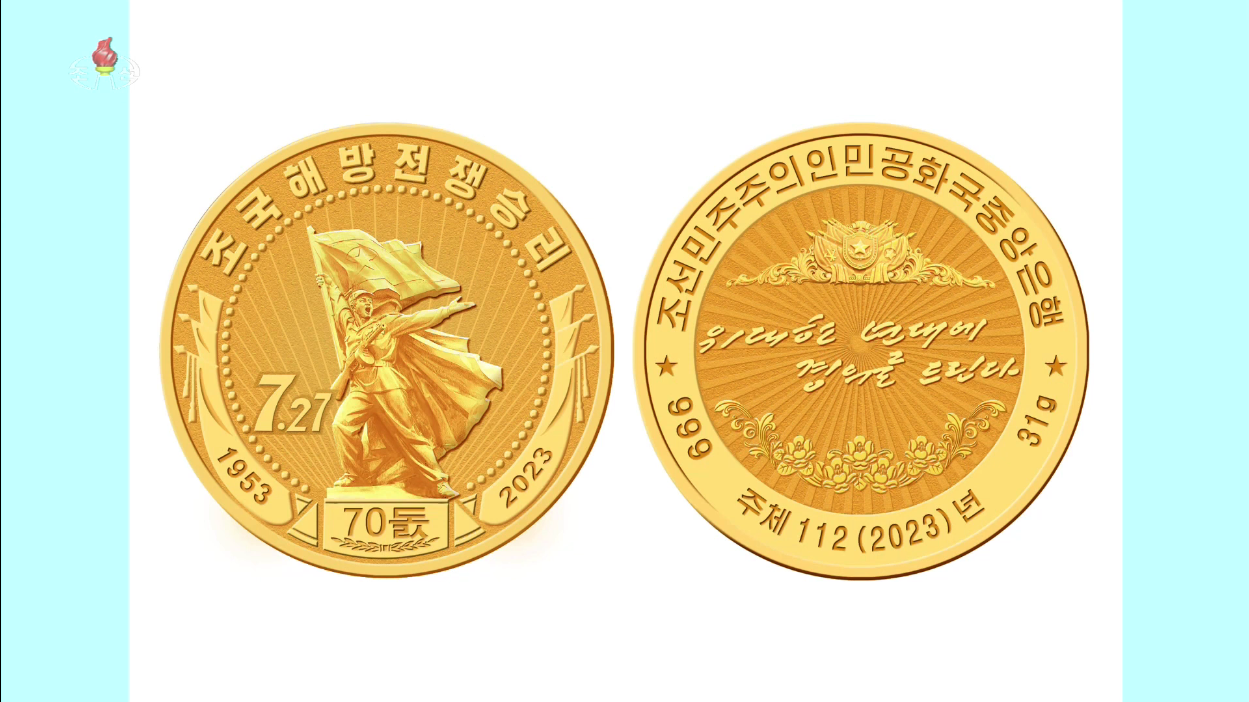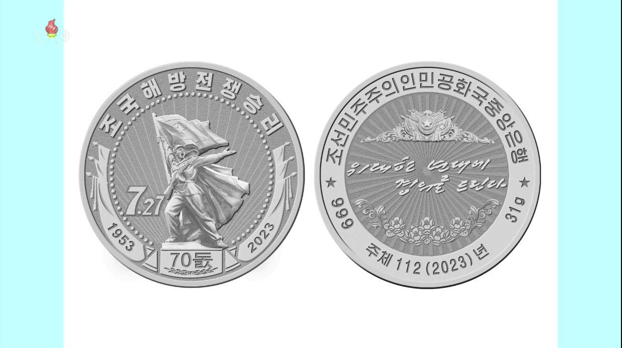 "조국해방"전쟁 "승리" 기념 "순" 금화, 은화 발행