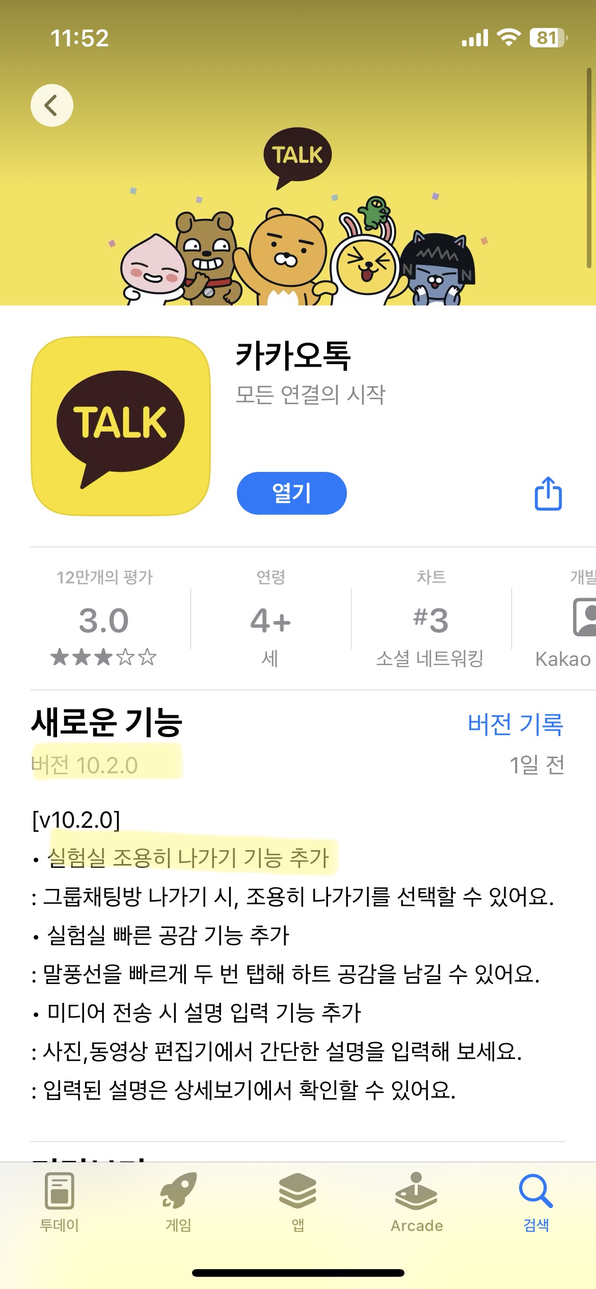 카카오톡 채팅방 조용히 나가기 기능 ㄷ ㄷ