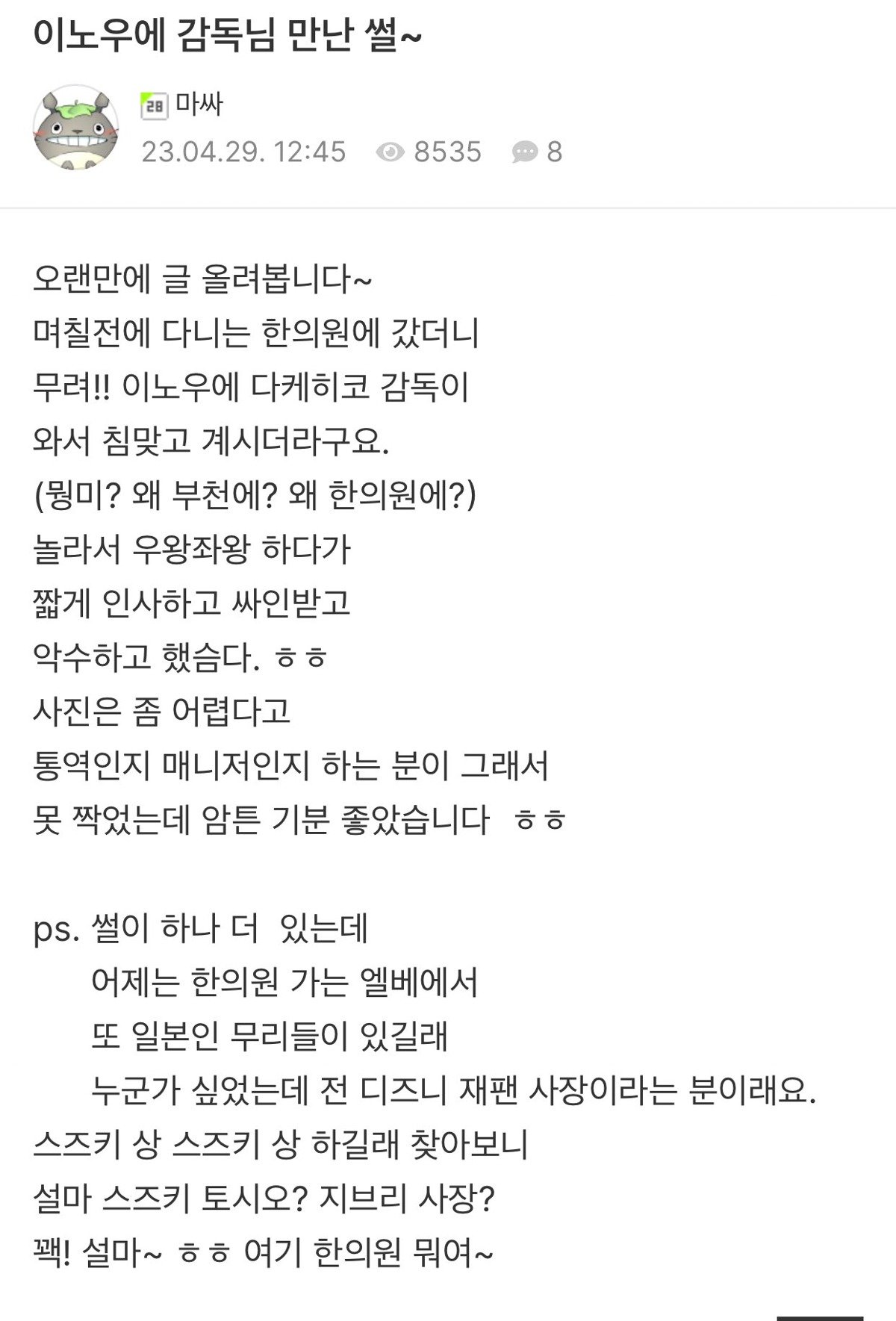 슬램덩크 작가가 한국왔을때 방문한 한의원