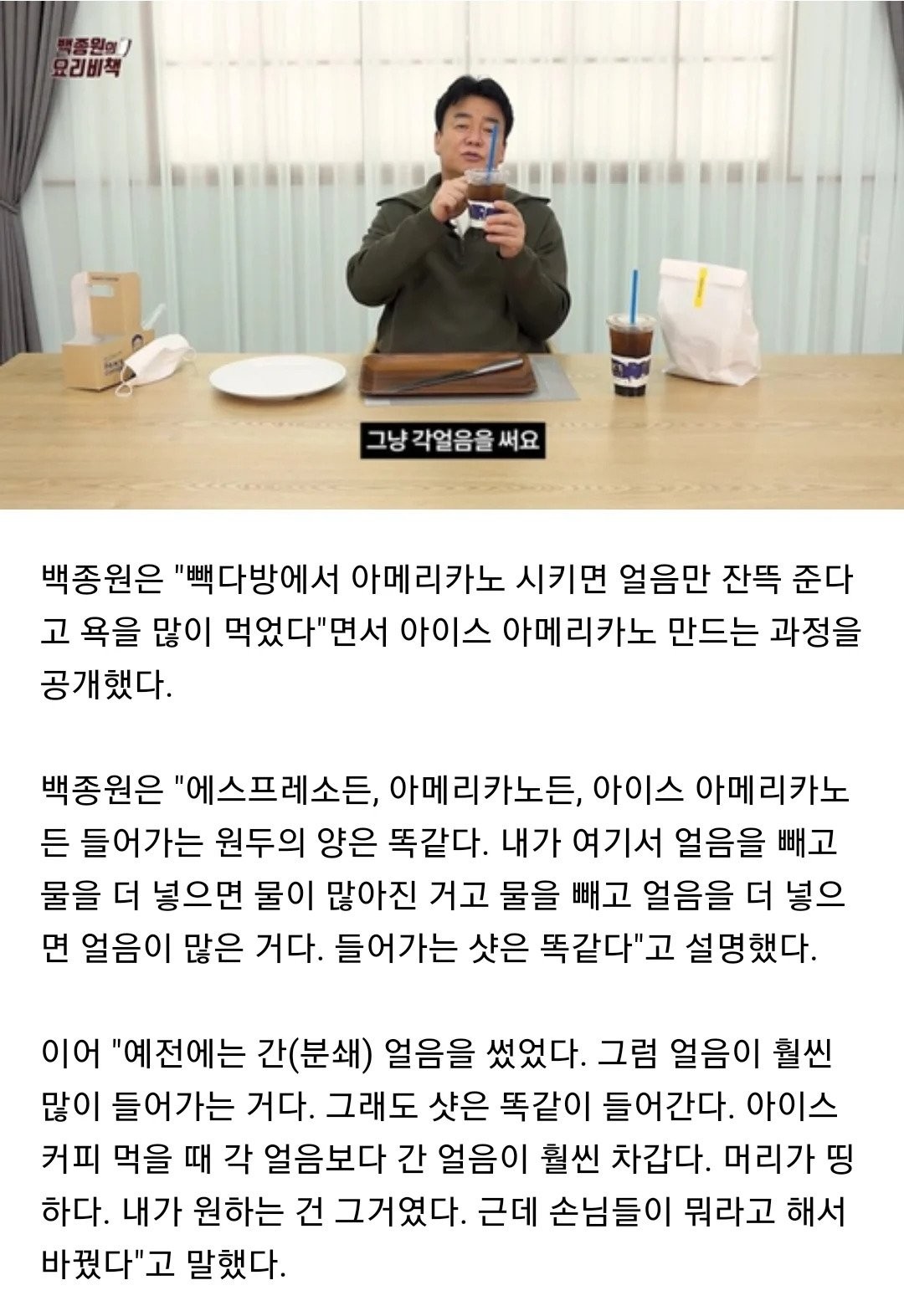 백종원이 욕먹으면서 초창기 빽다방 간얼음을 썼었던 이유