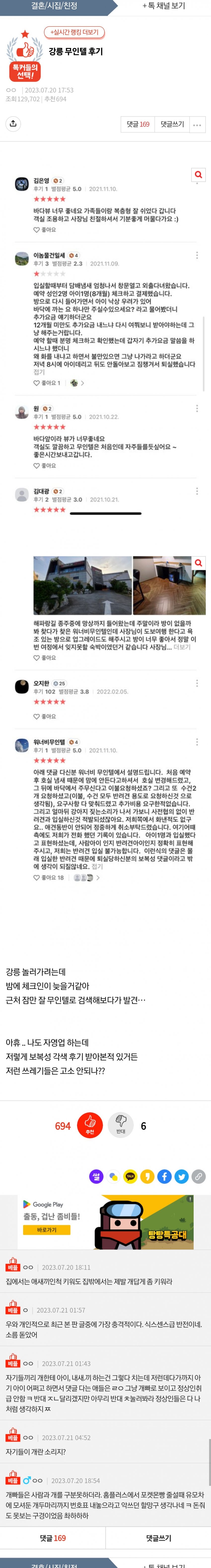 강릉 무인텔 후기