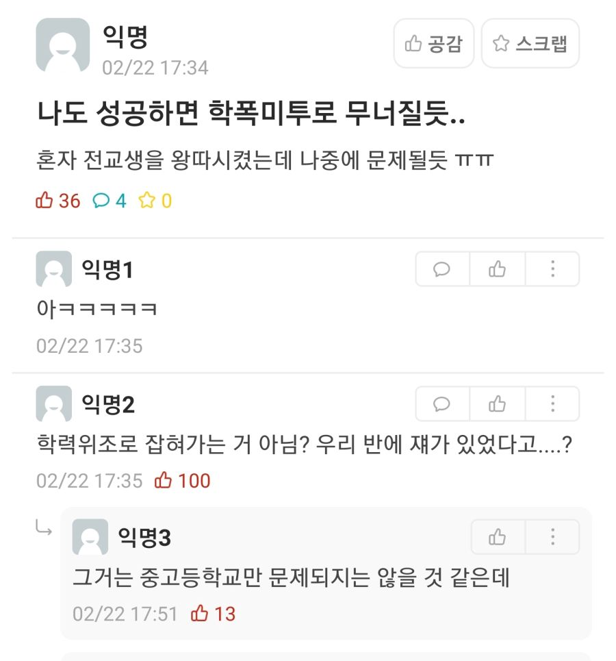 학폭 미투가 걱정되는 가해자
