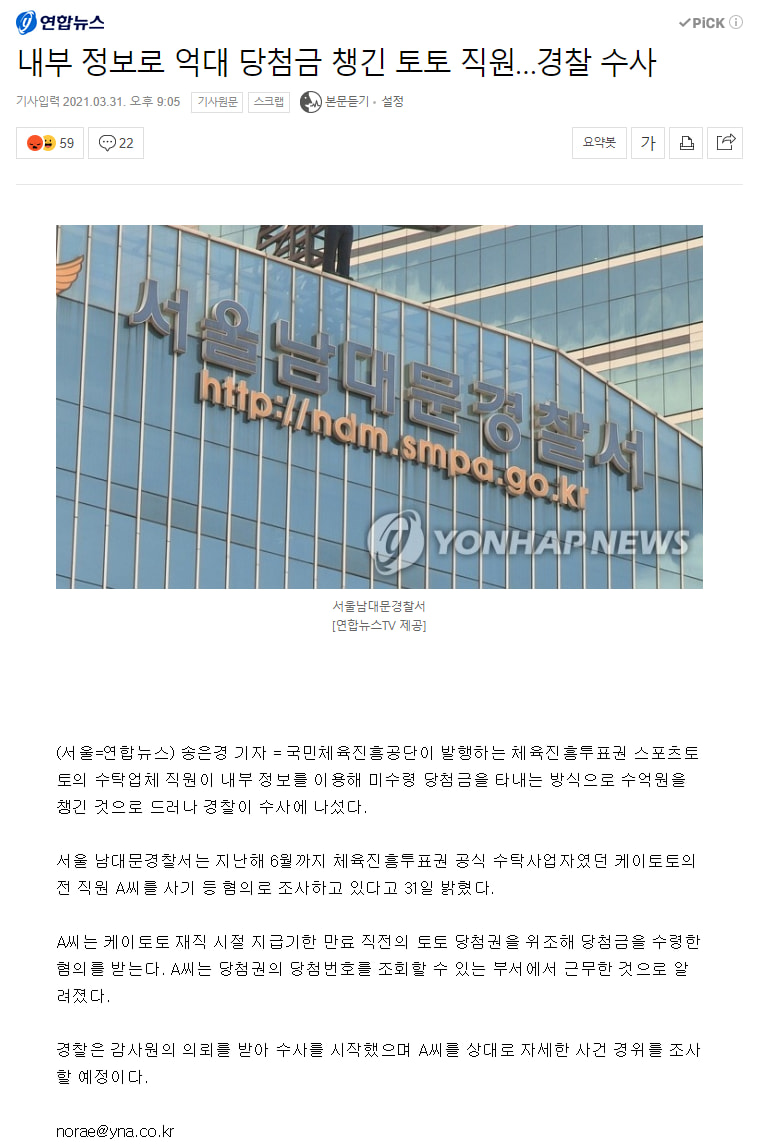 토토 수탁업체 직원이 기간 만료 직전인 미수령 당첨금을 당첨권 조작해서 수령해감