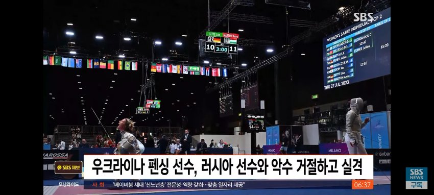 우크라-러시아 펜싱경기에 15-7로 우크라선수가 이긴상황에서 악수(펜싱경기 규정)를 거부하는 바람에 실격당함