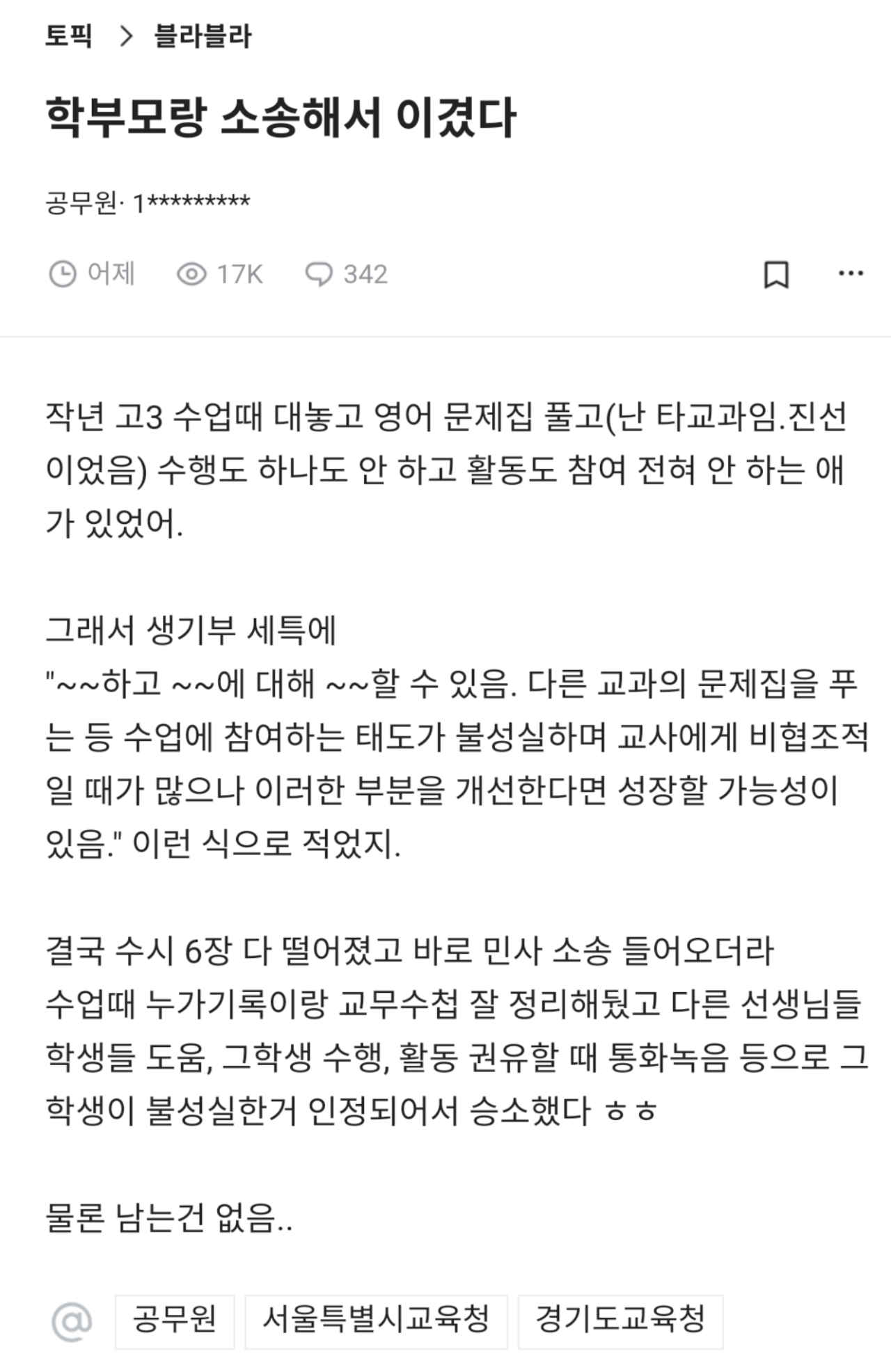 생활기록부 관련해서 소송까지 하는 세상