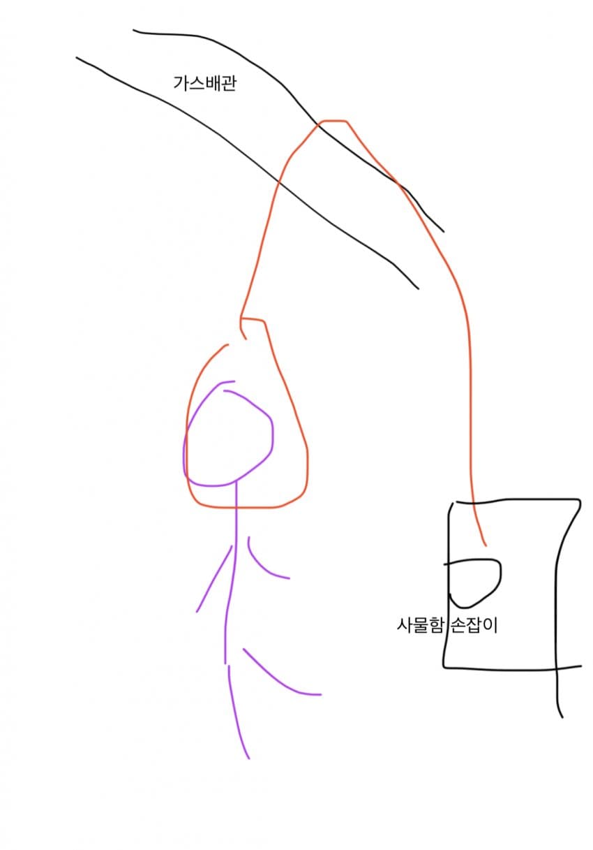 가스배관에 주황색 빨래줄 걸어서