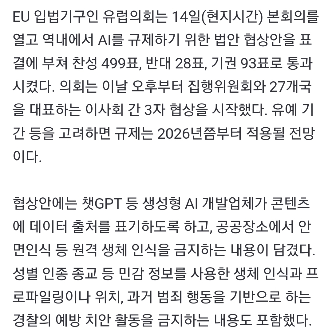 얼마전 EU에서 학습 데이터 출처 공개하라는 법안이 통과됐음