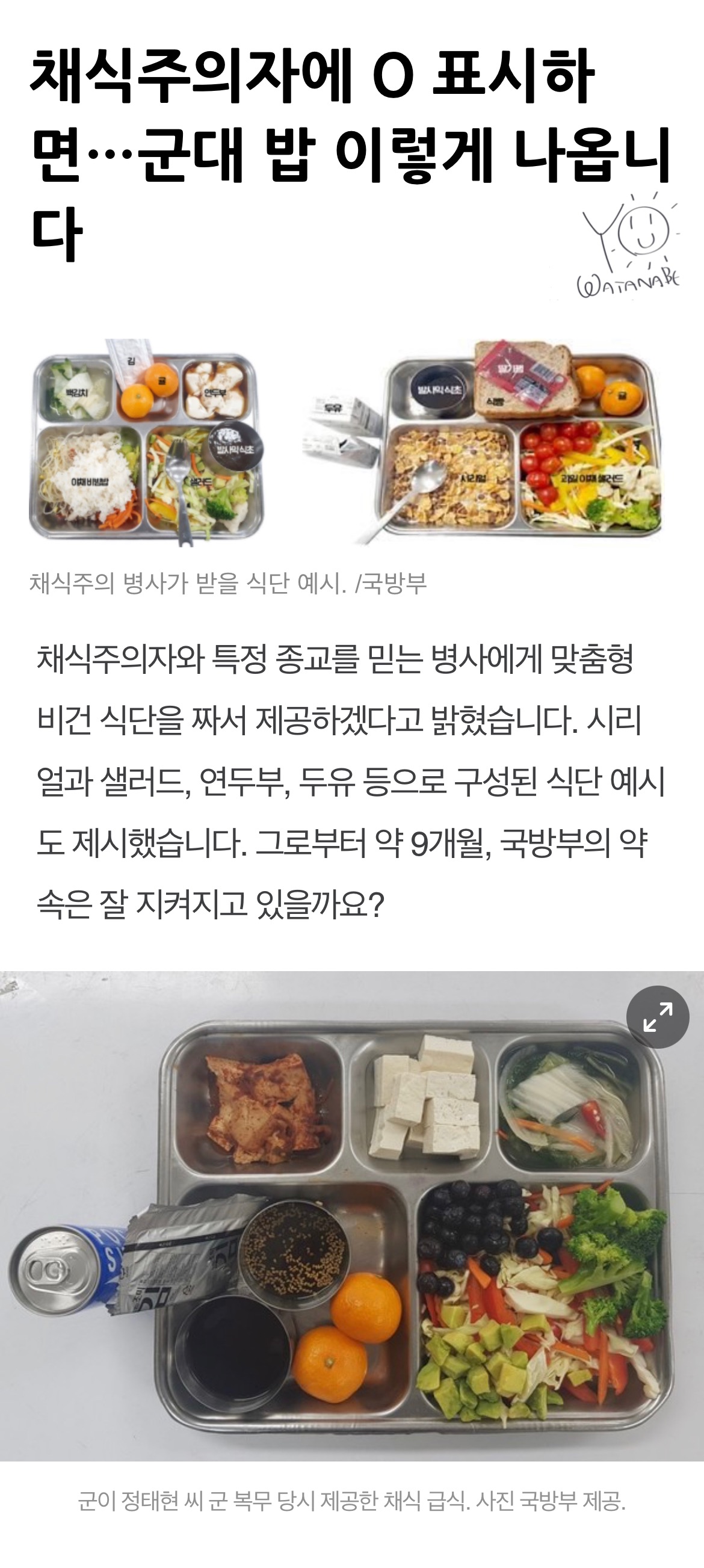 군대 채식주의 전용 식단