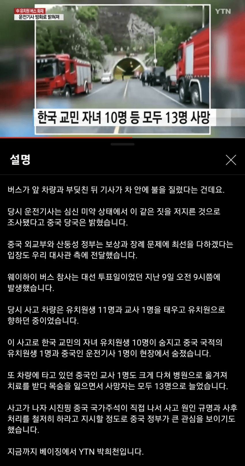 그때 유치원버스기사 중궈련이 지 해고됐다고