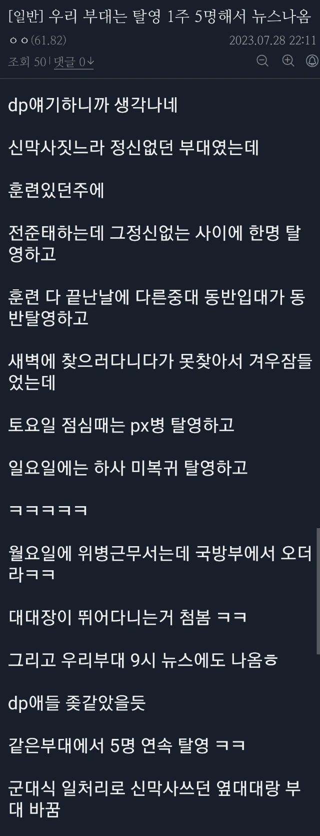 1주 5명 탈영해서 뉴스 나온 썰