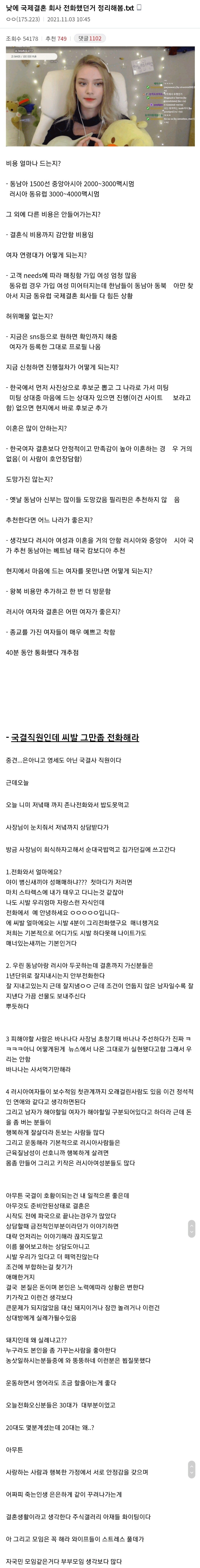 직접 국제결혼 회사에 전화해서 알아낸 정보