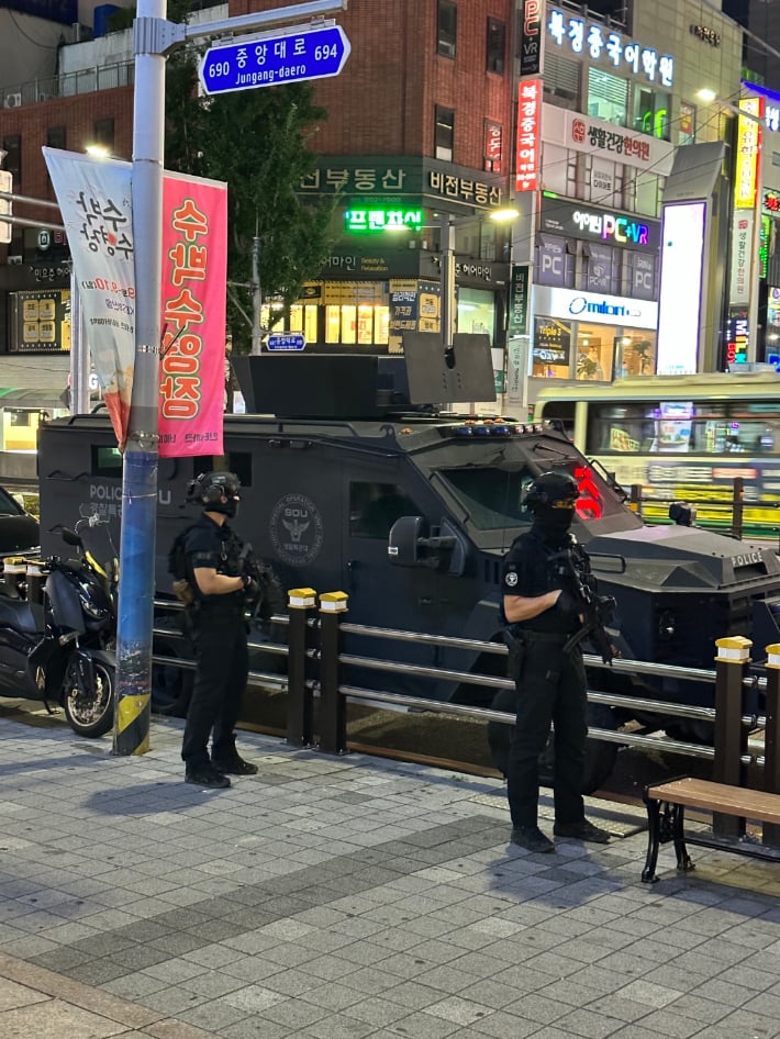 장갑차는 서울 강남역, 부산 서면역, 대구 중앙로역, 경기남부 오리역과 수원역, 전북 잼버리 행사장 등 9곳에 배치됐다.