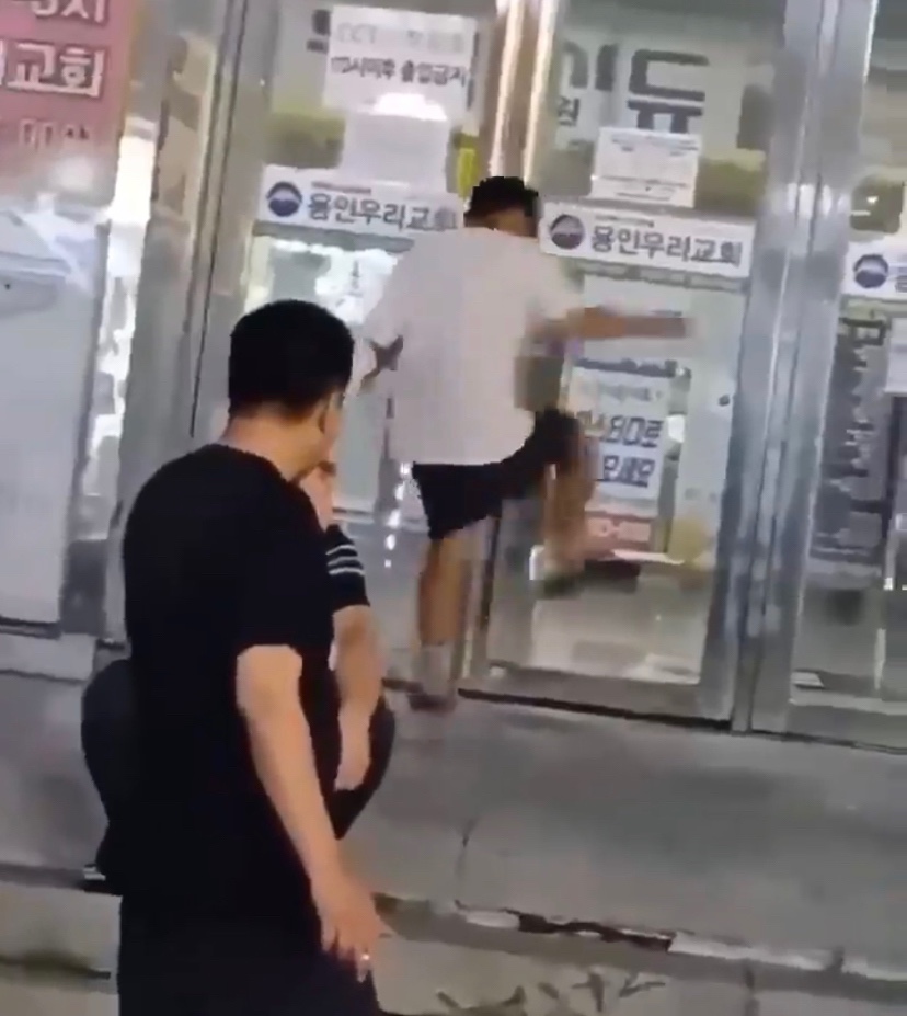 인명피해 있는진 모르겠고 칼 들고 발로 문 걷어차고 있다함