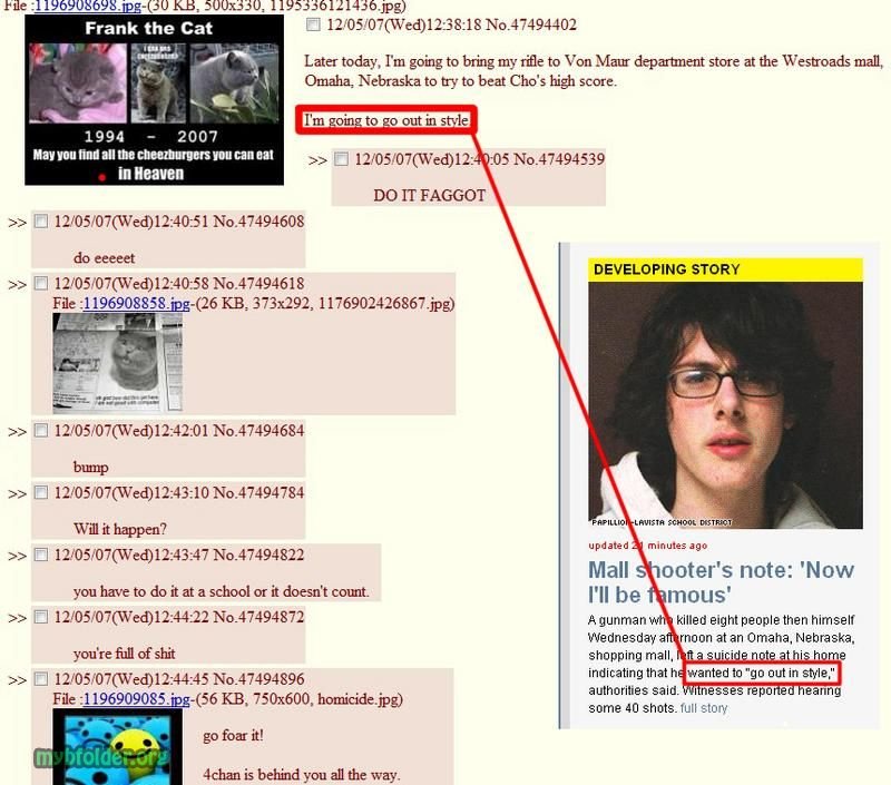 2007년 말 어느 ㅂㅅ이 4chan에서 조승희의 기록을 깨겠다는 선언을 함