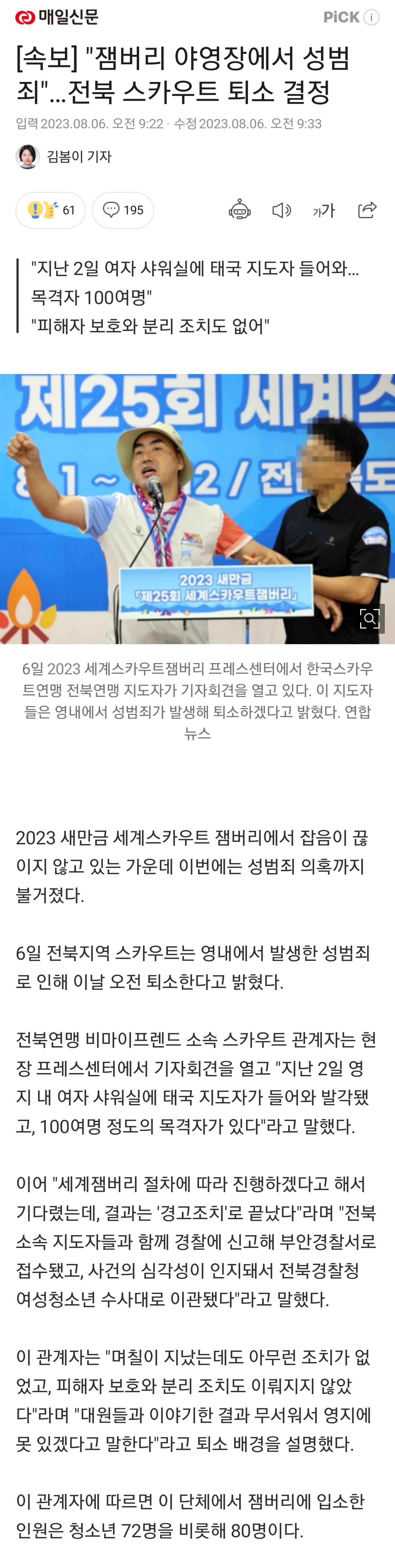 잼버리 야영장에서 성범죄 발생