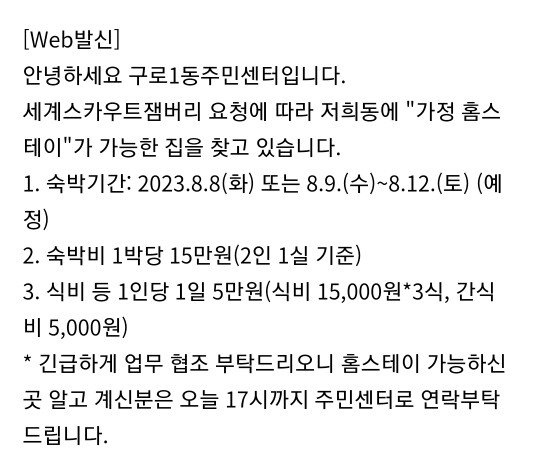 뜬금없이 잼버리 홈스테이 공고올림 ㅅㅂ ㅋㅋㅋ