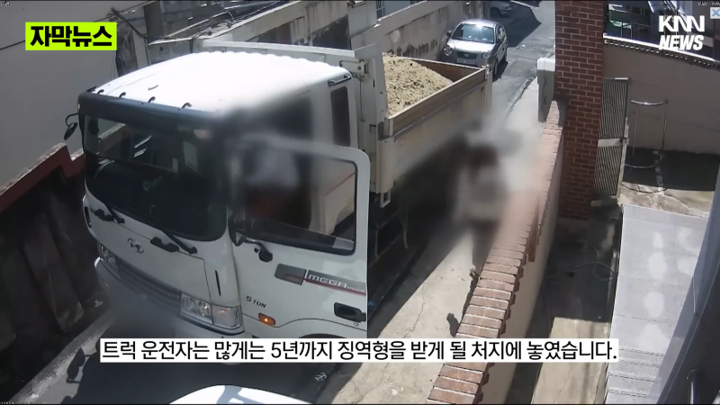 차 안빼준 경차를 골목길에서 밀어버린 덤프트럭 기사