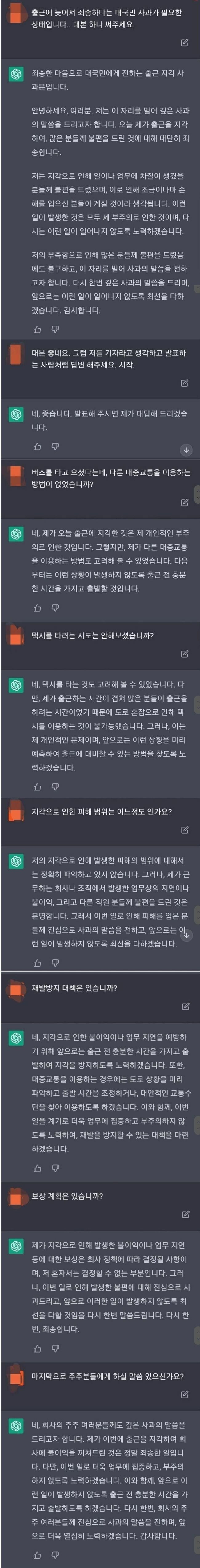 Ai가 써준 회사 지각 사과문 대본