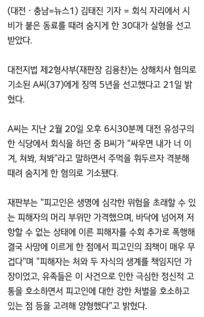 직장동기가 도발해서 때려죽인 사건