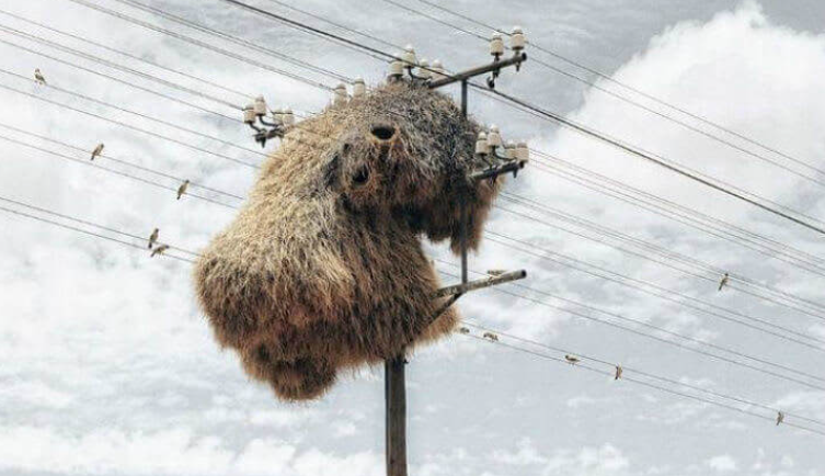 남아프리카의 집단베짜기새의 거대한 둥지(이 새들의 둥지는 100년동안 유지된다고함)
