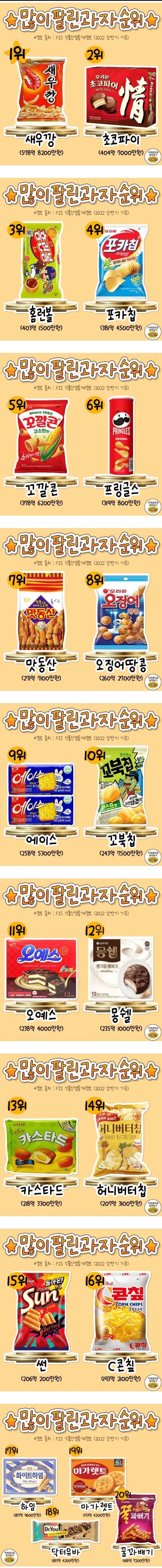 작년 많이 팔린 과자 TOP20