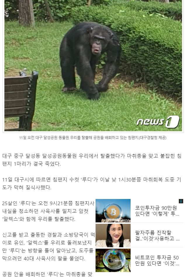 탈출한 침팬지 결국 '사망'