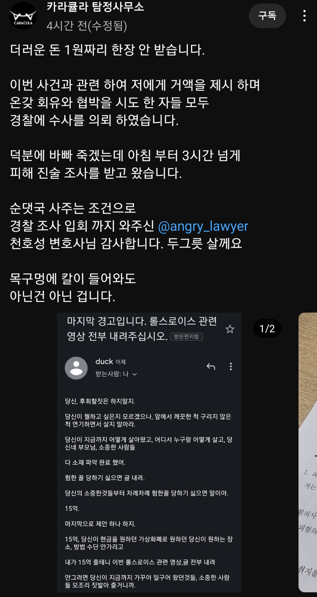 롤스로이스 폭로한 유튜버에게 15억 제안
