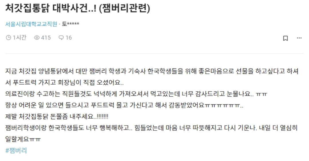 잼버리 처갓집통닭 트럭